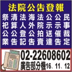 民眾日報報紙廣告刊登費用-地方法院公告登報民眾日報,報紙廣告刊登費用,地方法院公告,登報,刊登報紙分類廣告,全國版,地方法院公告