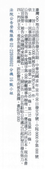 刊登全國版國外版新聞紙-法院判決離婚/請求離婚民事裁定
